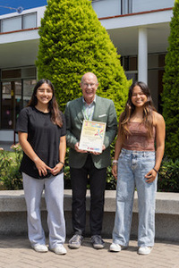 Unser Freund Kay Brügmann (KMK-Beauftragter NRW) überreicht den Schülerinnen des COLEGIO ALEMAN ALEXANDER VON HUMBOLDT in Lima/Peru für ihren Beitrag zum Cologne Song Contest 2025 die Goldene Urkunde. Der Beitrag wurde beim Finale des CSC, den die PLAN AG Köln veranstaltet hatte, per Video eingespielt.