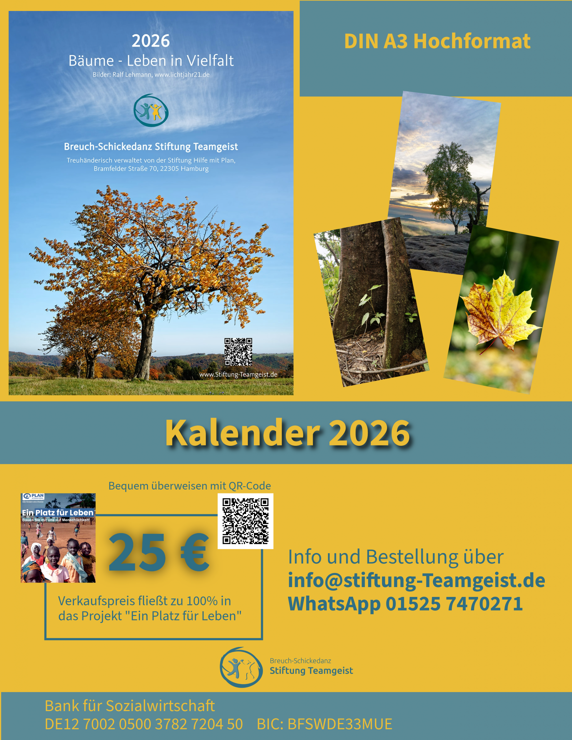 Da Ralf seine Fotos und Zeit kostenlos bereitstellt und wir den Druck privat finanzieren, fließen die gesamten 25 €/Stk. in das Projekt „Ein Platz für Leben“.